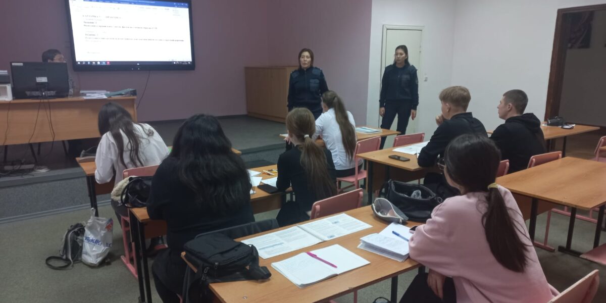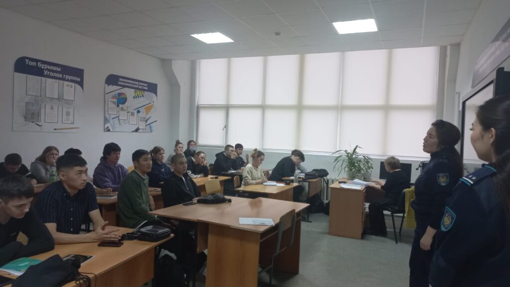 3 декабря 2025 года в колледже состоялась встреча студентов гр. 395 ПО-3, 404 СМ-3, 393 СЭЗС-3, 3, 384 МЭОСГ-4 с инспекторами ОБСБН УП г. Костаная майором полиции Саттыбаевой Л.И. и лейтенантом полиции Батирбековой А.Н.