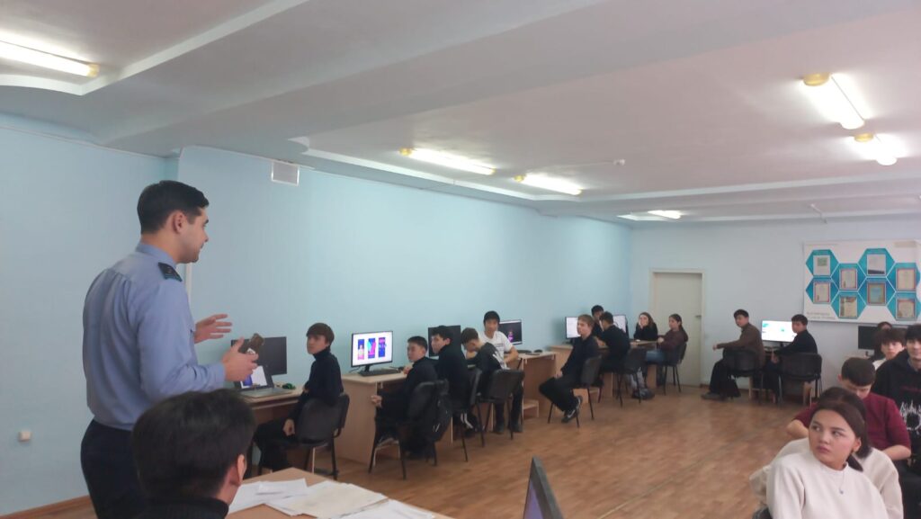 Цель мероприятия – сформировать представление об экстремизме, его видах, проявлениях и последствиях, показать важность уважительного отношения к людям независимо от их этнической, культурной или религиозной принадлежности. Правовой час был подготовлен руководителем информационно-разъяснительной работы Ерназаровой А.Е., она обратила внимание на то что современную международную обстановку трудно назвать стабильной. И одной из причин этого является экстремизм, приобретающий сегодня поистине всемирный характер. Привела факты о мерах ответственности в рамках существующего законодательства РК в случаях пособничества религиозным экстремистам и террористам.