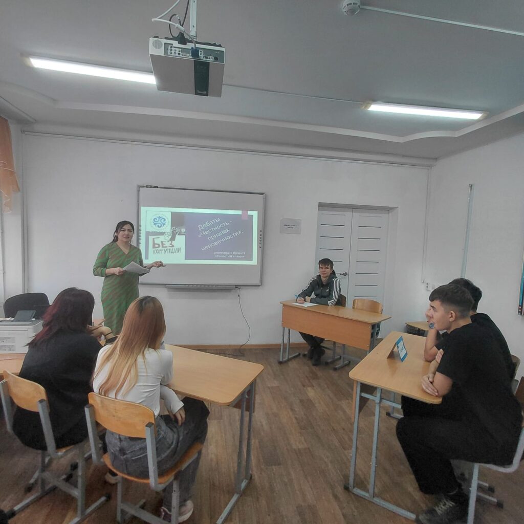 Организатором дискуссии выступила преподаватель общеобразовательных дисциплин Усенова Ж.О. В дебатах сошлись две команды: «Чистые руки» и «Справедливость для всех».