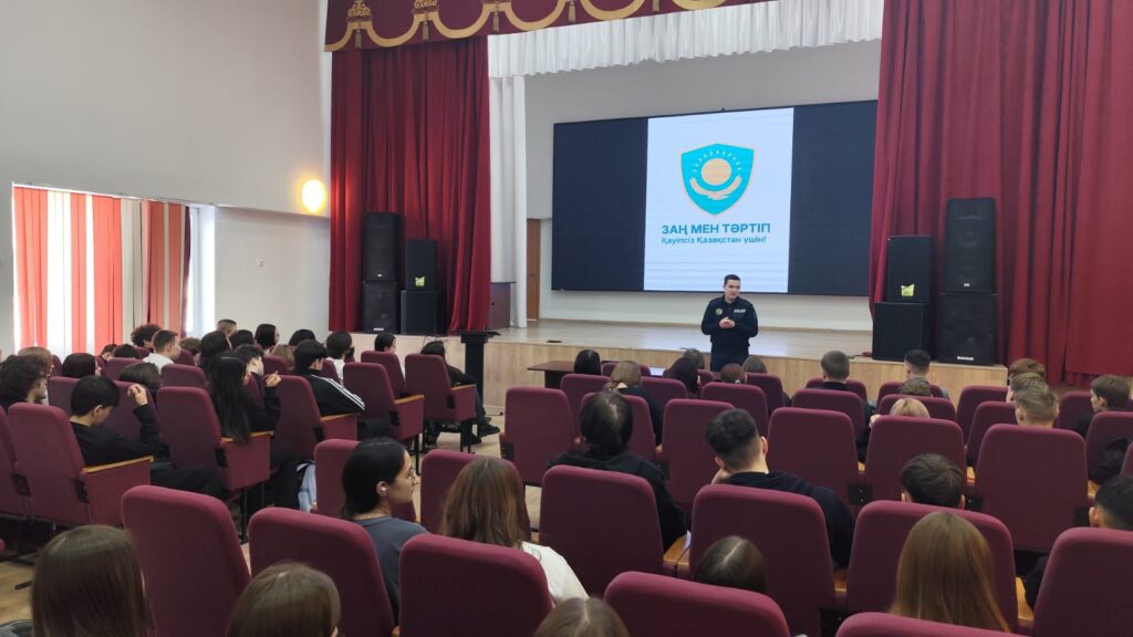 12 января 2026 года, в рамках месячника «Закон и порядок» Единой программы воспитания «Адал азамат», с целью повышения правовой грамотности и профилактики правонарушений среди молодежи, для студентов строительного отделения прошла встреча с инспектором полиции на тему «Мои права – моя ответственность», в ходе которой лейтенант Мырзахмет А.О. напомнил студентам об ответственности за административные и уголовные правонарушения, о необходимости соблюдения правил внутреннего распорядка колледжа, ответственного отношения к учебному процессу.