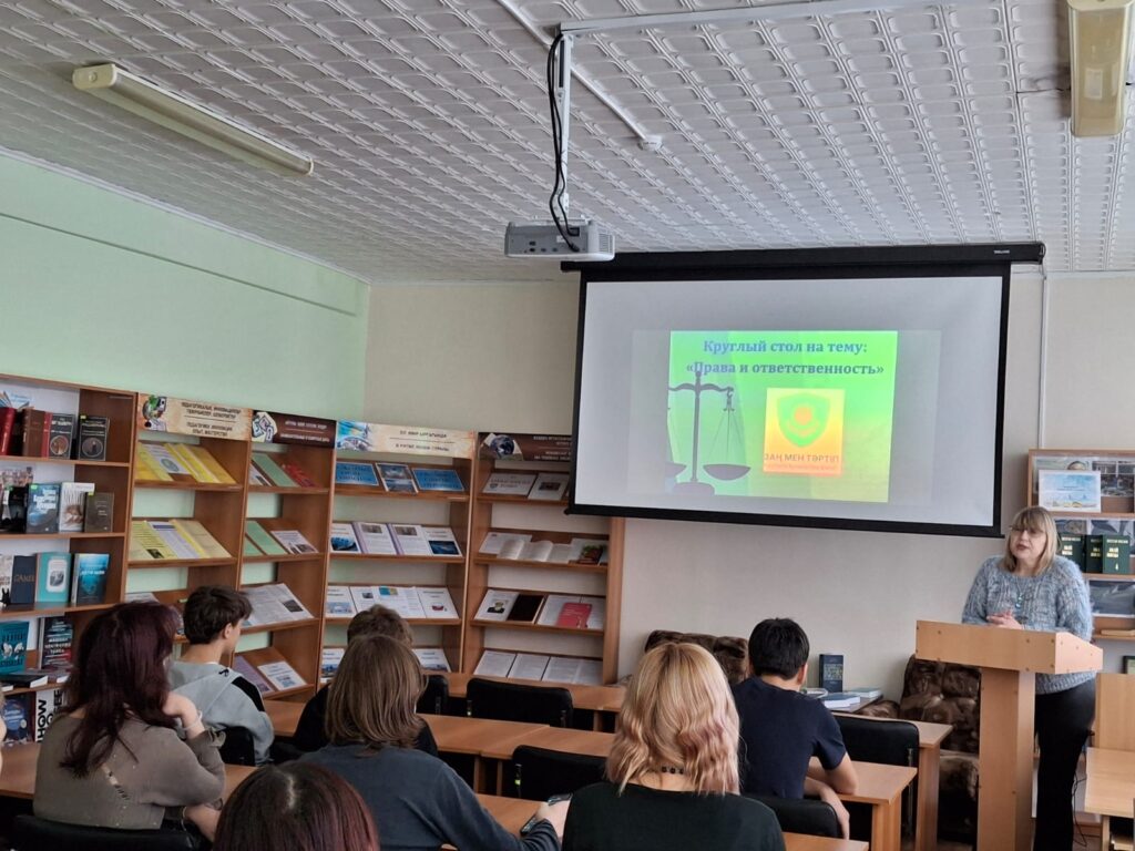 28 января 2026 года в библиотеке Костанайского строительного колледжа в рамках месячника «Закон и порядок», а также  единой программы воспитания «Адал азамат»  был проведен круглый стол на тему «Права и ответственность по законодательству Республики Казахстан».