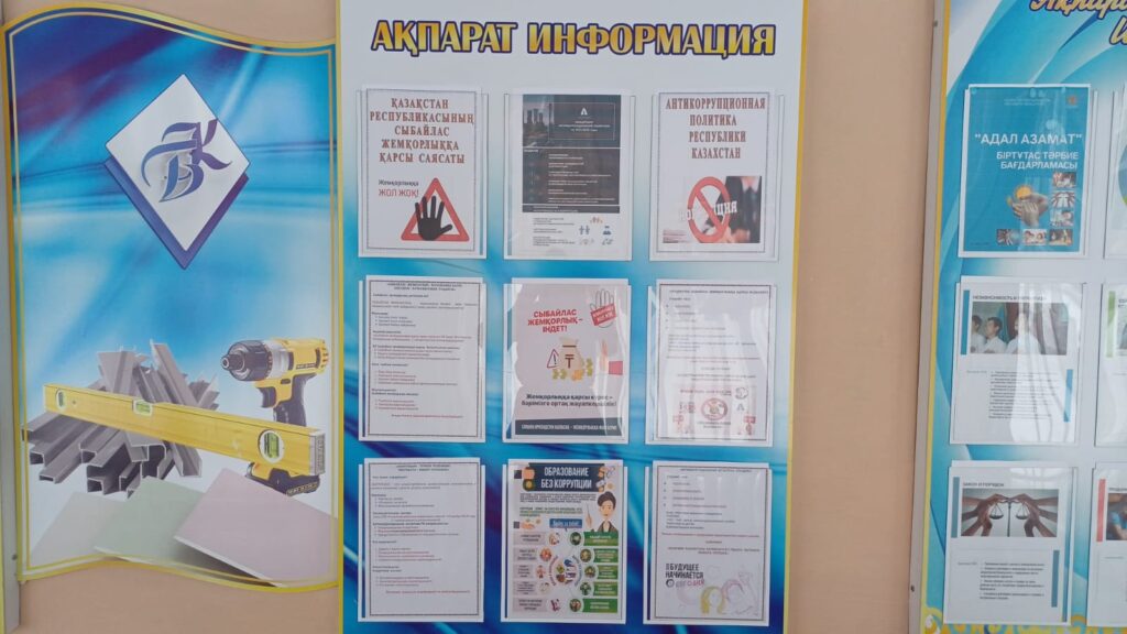В целях формирования у студентов нетерпимого отношения к коррупции и повышения уровня правовой грамотности, а также в рамках единой программы воспитания «Адал азамат» в колледже был оформлен информационный уголок «Антикоррупционная политика Республики Казахстан».