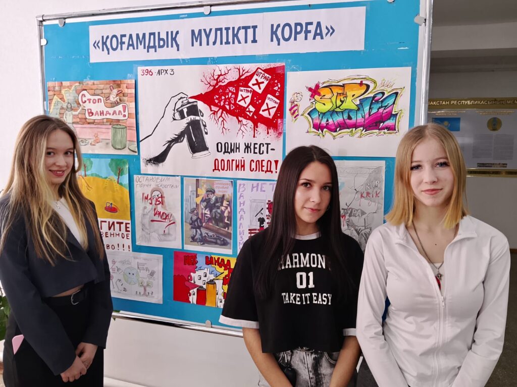 9 февраля завершился конкурс «Қоғамдық мүлікті қорға», посвященный общественной борьбе против вандализма. Студентам предлагалось выразить свое отношение к вандализму – бессмысленным и жестоким разрушениям, уничтожениям, порчи исторических памятников, культурных материальных ценностей, объектов через искусство плаката, граффити и иллюстрации.